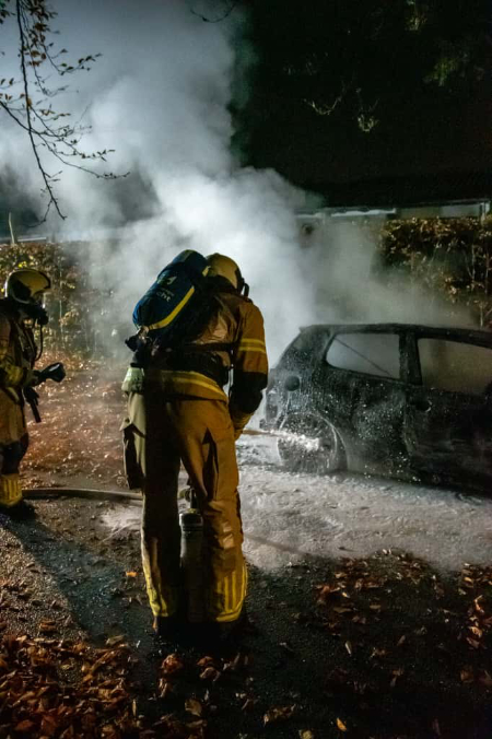 Bij aankomst stond het voertuig al volledig in brand. De vlammen sloegen metershoog de lucht in en waren van grote afstand zichtbaar. Buurtbewoners werden opgeschrikt door het felle licht. “We zagen het vuur metershoog oplaaien,” vertelt een omwonende.