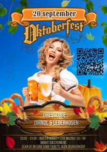 “Zaterdag 20 september in de Skihut Soesterberg. Bier, muziek, spellen en gezelligheid. Het Oktoberfest komt eraan..Jodelahitieeeeh!”, aldus de organisatie.