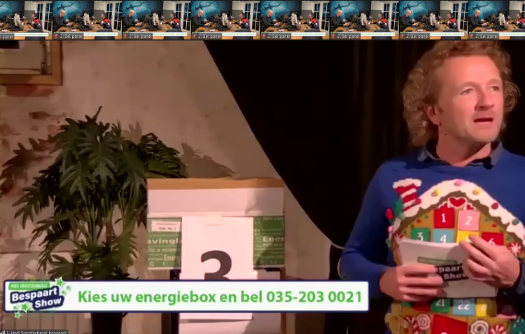 Het begin van de energieshow was voor veel deelnemers nog even ongemakkelijk met linkjes die aangeklikt moest worden en vragen die digitaal gingen via buttons, maar al snel ging de digitale bespaarshow soepel via Zoom als een ‘gewone’ televisie spelquiz. Pepijn Gunneweg presenteerde en begeleide (…in zijn feestelijke kersttrui) met veel enthousiasme de “Heel Soest(erberg) Bespaar Show” die zo’n twee uur duurde gisterenavond.