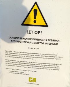 Aankomende dinsdag 17 februari brengt de Explosieven Opruimingsdienst Defensie (EOD) drie niet-ontplofte vliegtuigbommen gecontroleerd tot ontploffing op de voormalige vliegbasis in Soesterberg.