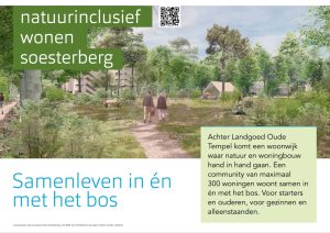 Rond vier uur gisterenmiddag gingen de deuren open bij het Officierscasino aan de Kampweg in Soesterberg. Bewoners en geïnteresseerden konden tot negen uur informatie ophalen over het zogenaamd natuurinclusief wonen, een mix van driehonderd woningen ingepast in het huidige historische groen van de Oude Tempel bosgebied. Geen afscheidingen, hekwerken of afrasteringen van gronden, maar bos- en tuinkavels die vloeiend of natuurlijk in elkaar overlopen. “Een goed voorbeeld van natuurinclusief wonen zonder grenzen of borders is de woonwijk Kerckenbosch in Zeist”, aldus een woordvoerder van de gemeente Soest die over de hele dag zeer content was met de opkomst. Ruim vijfhonderd mensen kwamen naar Soesterberg om te snuffelen in de plannen, plattegronden en verbeeldende plaatjes.