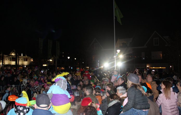 Sinterklaas en zo’n vijftig kleurrijke pieten hadden onderweg een klein beetje vertraging op deze koude avond, maar uiteindelijk werden de kinderen op het plein van de supermarkt beloond.