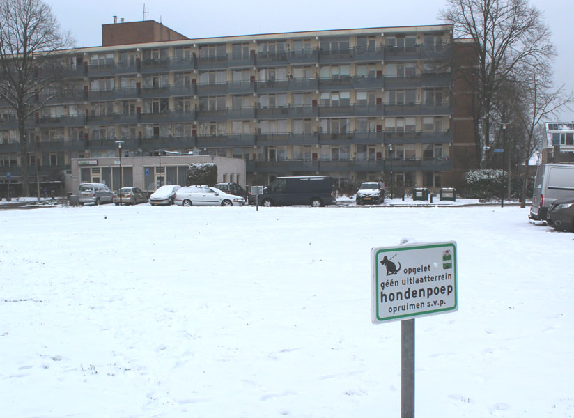 Het is jammer dat sommige mensen de stront daar laten liggen, maar overdrijven is ook een vak… Als ik langs dit veld loop, dan ruik ik niks bijzonders. Iets verderop, daar ruik ik de oude wijn uit de glasbak dus ik kan prima ruiken.