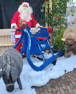 Afgelopen zaterdagmiddag was de kerstmarkt op het plein voor de supermarkt, met een kerstman, echte- en opgezette dieren, een enthousiaste dansgroep en enkele knusse kraampjes met onder andere heerlijke Glühwein en eigen gemaakte erwtensoep.