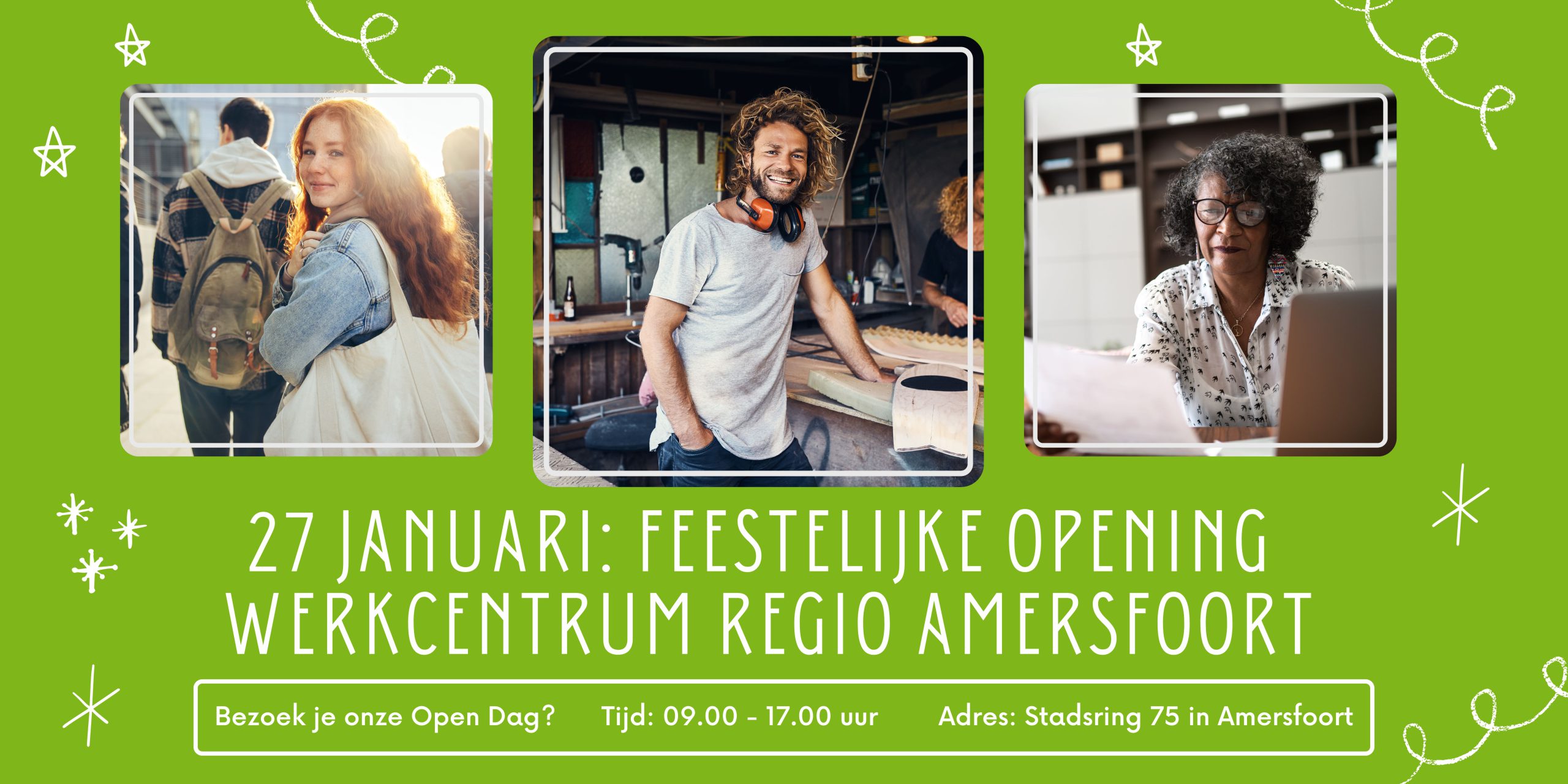 Bent u op zoek naar ondersteuning, advies of inspiratie over werk, scholing of je loopbaan? Kom dan naar het Werkcentrum regio Amersfoort. Op vrijdag 27 januari 2023 wordt een feestelijke dag georganiseerd waarop u een kijkje kunt nemen in het nieuwe Werkcentrum regio Amersfoort aan de Stadsring 75 in Amersfoort.