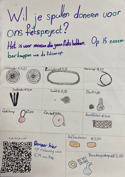 Voor de bovenbouwleerlingen is het fietsproject een waardevolle ervaring. Ze ontdekken hoe samenwerken iets bijzonders kan opleveren en leren wat het betekent om voor anderen klaar te staan. Het besef groeit dat hun inzet echt een verschil maakt. Door de reparaties niet alleen uit te voeren, maar ook te organiseren, groeien ze in verantwoordelijkheid en zelfvertrouwen.