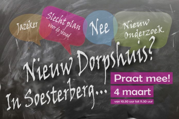 Volgens Burgerbelangen Soest/Soesterberg en politieke partij POS moet het college terug naar de tekentafel en anno 2023 onderzoek doen naar de behoeften van culturele activiteiten in het dorp. “De onderliggende onderzoeken zijn niet recent en Soesterberg is volgens POS de laatste jaren behoorlijk gegroeid”, aldus fractievoorzitter Gerben Stormbroek die samen met partijgenoot Ilona van der Linden morgenvroeg graag wil horen wat er leeft onder de inwoners van Soesterberg. Als partij is POS zeker niet tegen een nieuw dorpshuis, maar het moet blijkbaar wel anders.