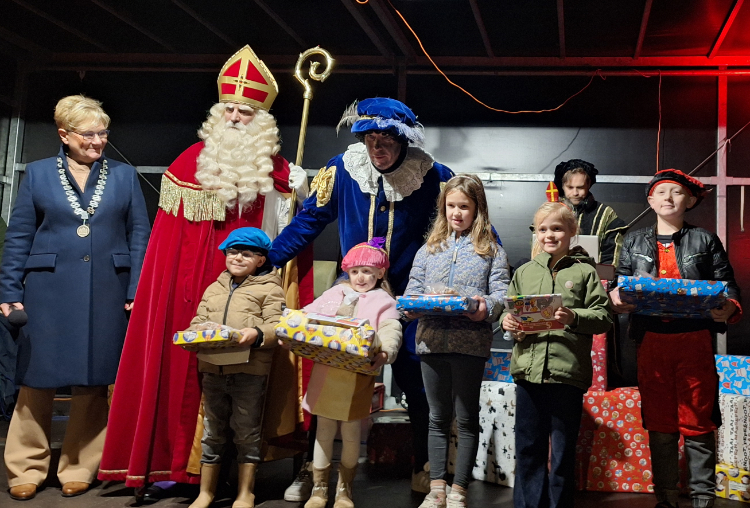 Honderden kinderen en hun ouders trotseerden de herfstkou om de jaarlijkse intocht van Sinterklaas bij te wonen. Rond half zes arriveerde de goedheiligman te midden van luid gejuich en enthousiast gezwaai op zijn vertrouwde witte schimmel, gevolgd door de swingende trekkerstram van Eetcafe De Stoeterij vol met pieten. Het Den Berghplein stond helemaal vol met enthousiaste inwoners.