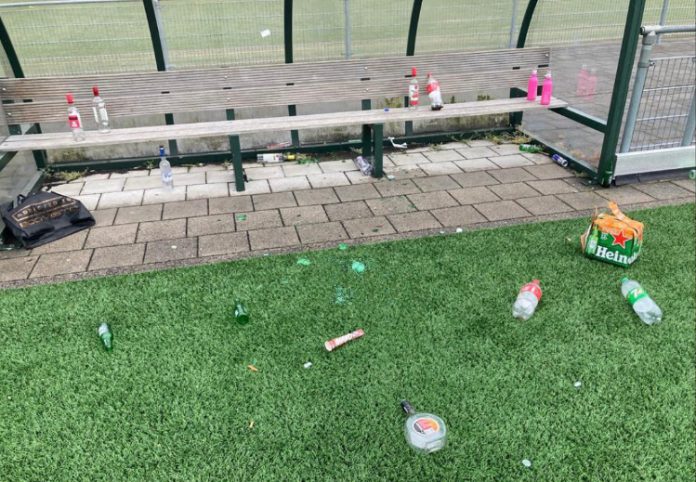 Voor veel inwoners en clubleden is de maat vol, want buiten het ‘gewone’ afval was er afgelopen maandagmorgen sprake van glasscherven op het speelveld. “Voetballen en een beetje chillen is oké, maar op deze manier je rotzooi achterlaten niet!” aldus voetbalvereniging ’t Vliegdorp op Facebook. Kapotte flesjes en glasscherven op het speelveld waar de volgende dag kinderen moeten voetballen is volgens de vereniging gewoonweg niet te begrijpen en respectloos.