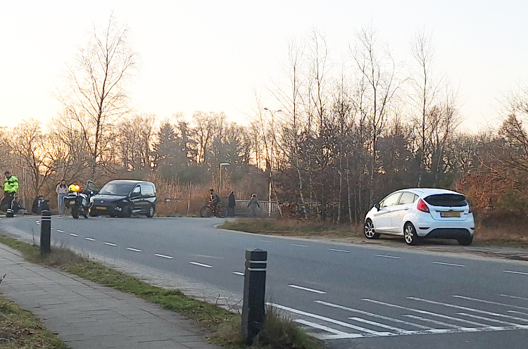 Ook dinsdagmiddag vond er aan het eind van de dag een aanrijding plaats op de Kampweg. In de bocht bij het viaduct over de A28 botste een Tesla op een bestelbusje. Dit is een berucht punt waar automobilisten regelmatig de bocht met hoge snelheid afsnijden. Ook bij dit ongeval was er gelukkig alleen sprake van een behoorlijke blikschade.