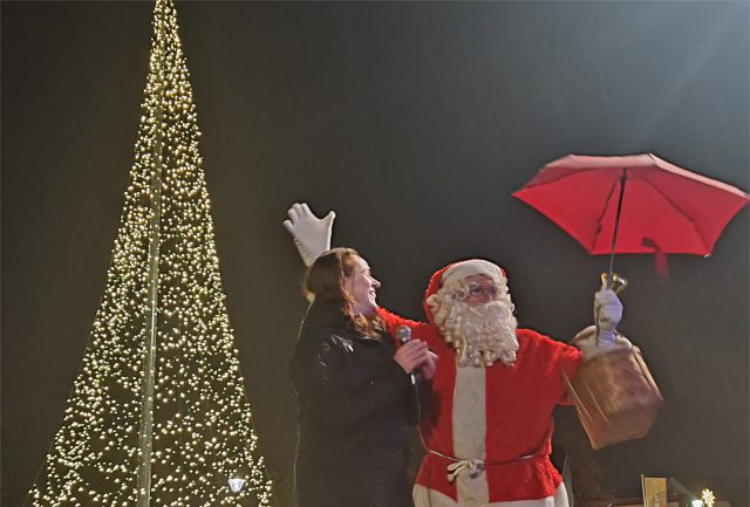 Wethouder Anne Sterenberg en de Kerstman ontbrandden samen de lichtjesboom op het Den Berghplein. Het Den Berghplein werd een sfeervolle ontmoetingsplek voor de start van de kerstperiode.