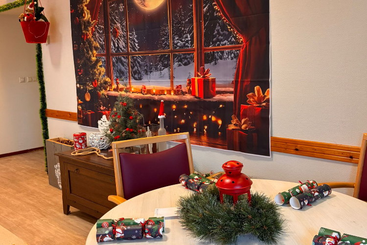 De vrijwilligers hadden alles uit de kast gehaald om de ruimte om te toveren tot een waar kerstdecor. Tafels waren rijkelijk versierd met kerststukken, lichtjes en slingers. Ook de ontmoetingsruimte zelf was nauwelijks te herkennen, zo uitbundig was deze aangekleed. Een van de aanwezige bewoners keek verbaasd rond en zei bewonderend: “Het lijkt wel een heel andere ruimte. Wat hebben ze hun best gedaan.”