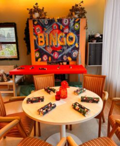 Net als vorig jaar trok de Kerstbingo veel bezoekers. Ruim vijfenzeventig senioren namen plaats aan de tafels, velen gekleed in hun mooiste kerstoutfit. Kerstmutsen, glitters en feestelijke kleding bepaalden het beeld. De deelnemers waagden enthousiast een gokje en werden ondertussen op hun wenken bediend. Vrijwilligers zorgden voor koffie, lekkernijen en later op de avond werd er zelfs een aperitief geserveerd.