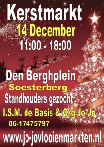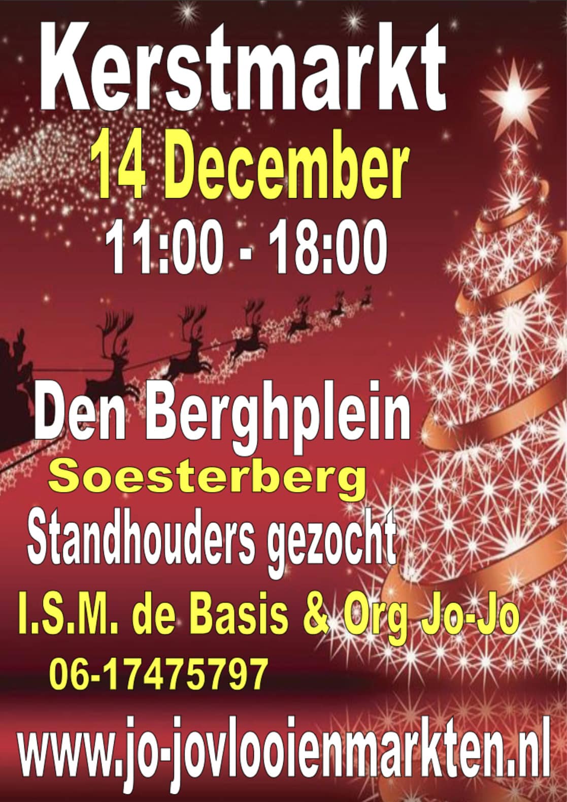 Soesterberg bruist op zaterdag 14 december met een feestelijke kerstmarkt op het Den Berghplein! Van 11.00 tot 18.00 uur verandert het plein en de Banningstraat in een sfeervol kerstdecor vol lichtjes, muziek en gezelligheid.