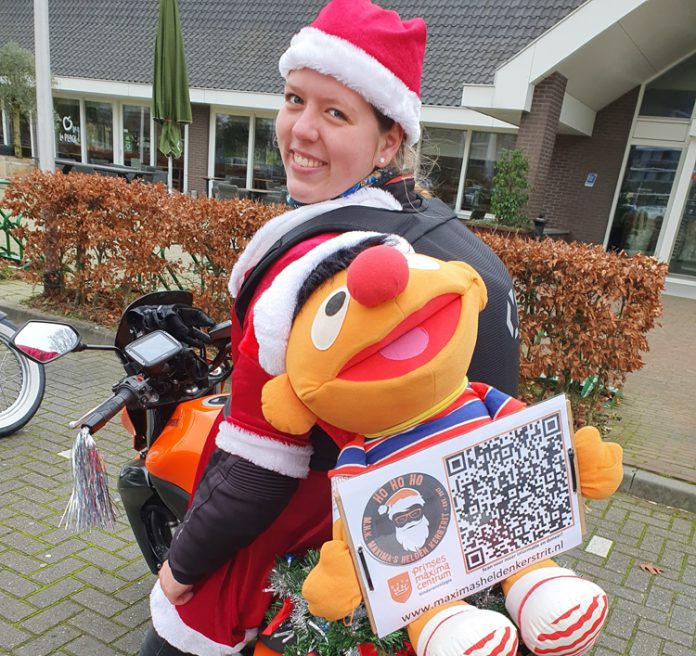 De sympathieke motorrijdster komt uit Soest en zal dit jaar voor het 2e jaar op rij meedoen aan Maxima’s “helden kerstrit”. Dit doet ze samen met andere motorrijders door heel Nederland. Ze hebben allemaal iets gemeen, want ze gaan aankomende dagen verkleed op de motor en vragen zoals ieder jaar aandachtig voor het goede doel.