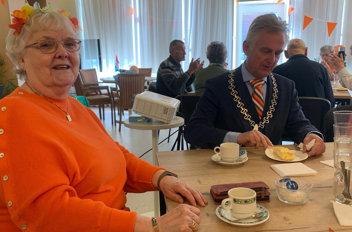 Later die ochtend volgde een onverwacht hoogtepunt. Hoewel de traditie leek te wankelen doordat vrijwilligers van seniorenflat De Drie Eiken hun eigen ‘burgemeester Chiel’ hadden geregeld, verscheen Metz alsnog onverwachts. De bewoners reageerden dolblij. In een korte, warme toespraak wenste Metz iedereen een fijne Koningsdag toe. Terwijl het geroezemoes door de zaal klonk, deelde men de tweede oranje-tompouce van de dag uit.