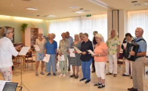 Melisande Smitshuyzen stond aan de wieg van het koor. Zij heeft dus alle drie dirigentes meegemaakt, ieder met haar eigen stijl. Vera van Zanten is ook één van de koorleden van het eerste uur. Zij slaat geen maandagse repetitie over. “Er is niets plezieriger dan om ‘s morgens te beginnen met zingen”, aldus van Zanten.