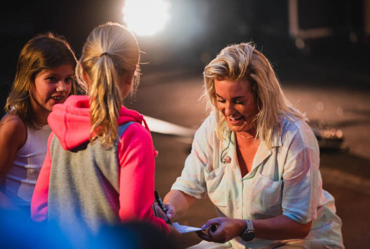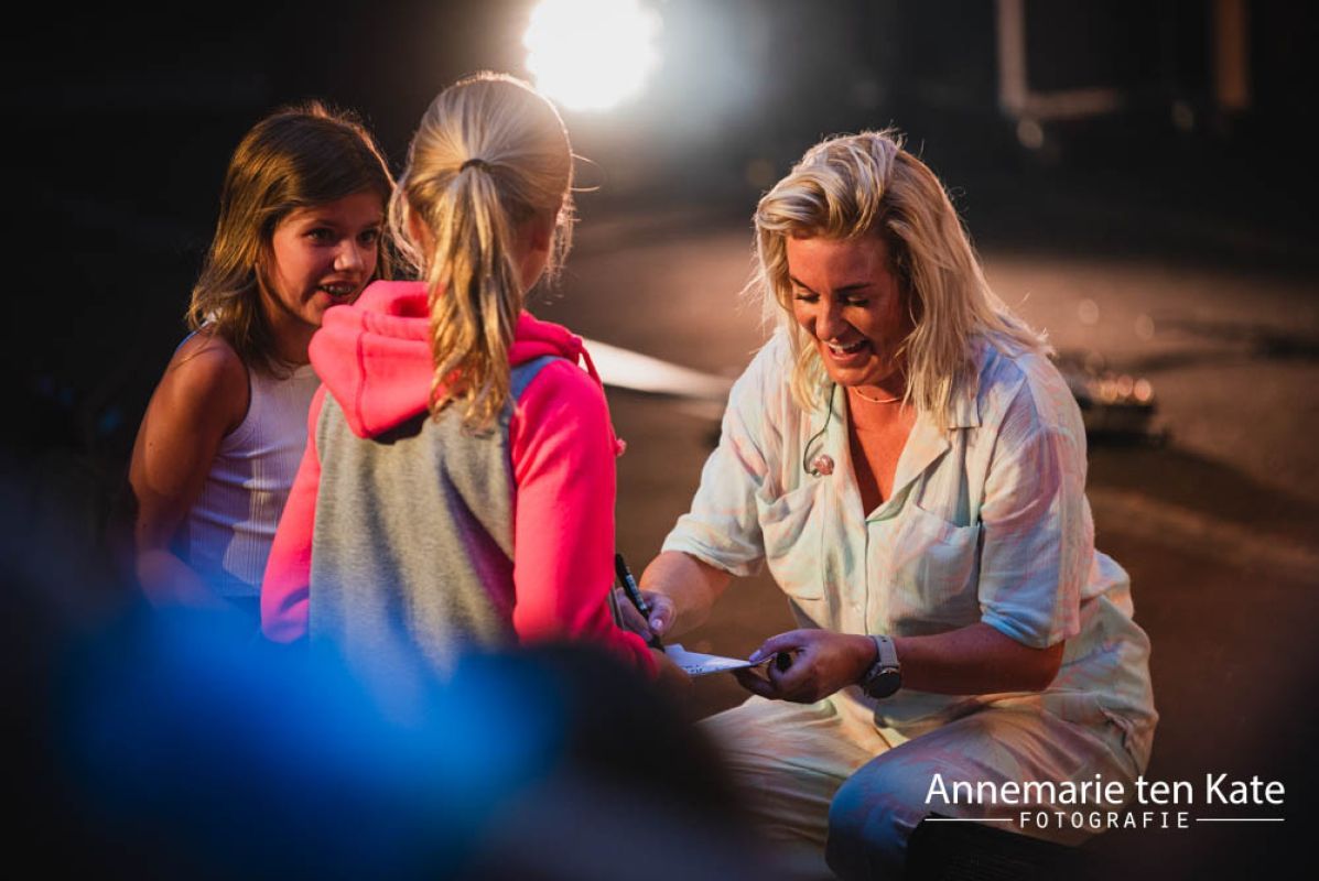 Stoer leuke foto van mijn dochter die een handtekening krijgt van Sanne.