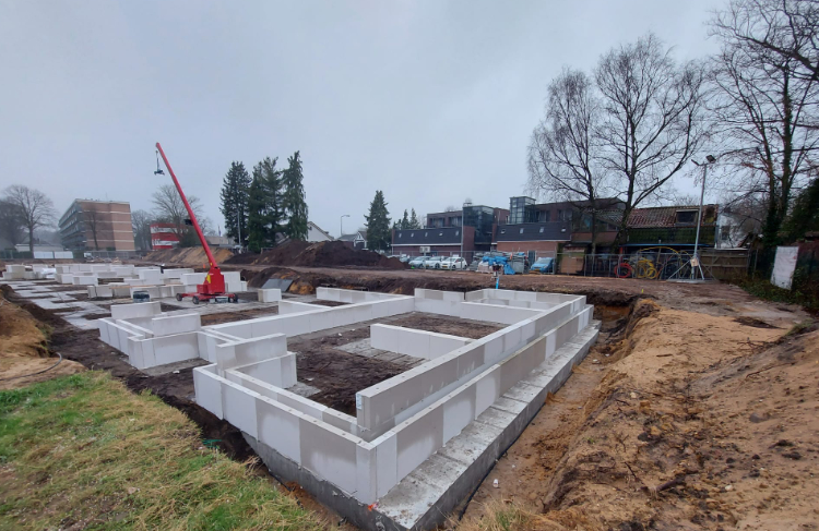 De nieuwbouw op de Moerbessenberg in Soesterberg gaat snel, na slechts enkele weken sloop zijn ze inmiddels begonnen aan de fundering van de nieuwe huurappartementen.
