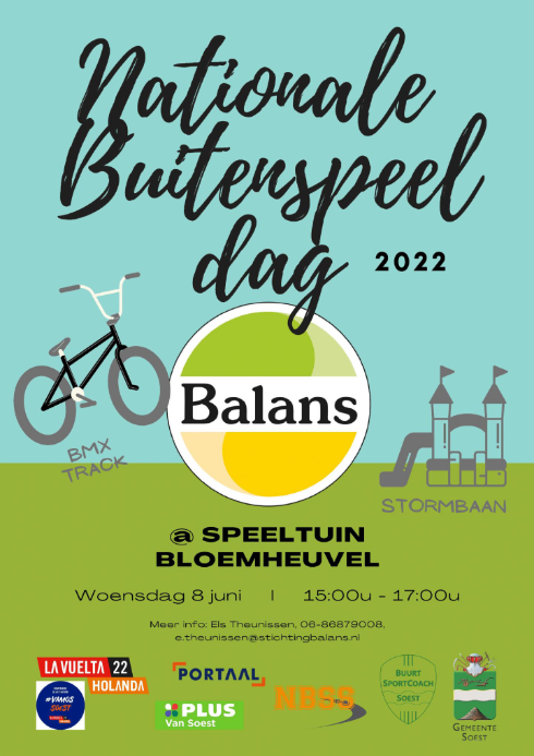 Er is ook een gast aanwezig, namelijk wethouder Harrie Dijkhuizen. Hij komt onder andere vanwege de Vuelta die aanstaande 19 augustus door Soesterberg zal rijden. De Nationale Buitenspeeldag zal plaatsvinden bij de speeltuin Bloemheuvel van 15.00 tot 17.00!