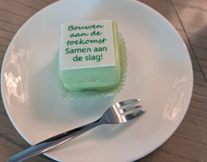Na het voorschotelen van een gebakje voorzien met de tekst “Bouwen aan de toekomst, samen aan de slag”, een kop koffie en een korte introductie van Burgemeester Rob Metz werden de nieuwe collegeleden van Soest gepresenteerd aan de lokale pers. Overigens niet allemaal onbekende in het nieuwe college, want Aukje Treep (GGS) en Liesa van Aalst (VVD) beginnen inmiddels aan hun tweede termijn.