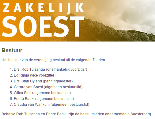 Als we de bestuurssamenstelling van ONS netwerk raadplegen, dan valt ons wel iets bijzonders op. Als algemeen bestuurslid heeft eigenaar – de heer van Soest – van de “spooksuper” en de huidige Plusmarkt zitting in het bestuur van de vereniging. Zou daarom de vereniging terughoudend zijn in de lobby naar een tweede supermarkt en ontwikkeling van het winkelhart van Soesterberg? We zien wel een zeer actieve lobby voor een ambitieus energieplan of solarproject op het vliegveld, maar niet voor een nieuwe grote supermarkt in het dorp?