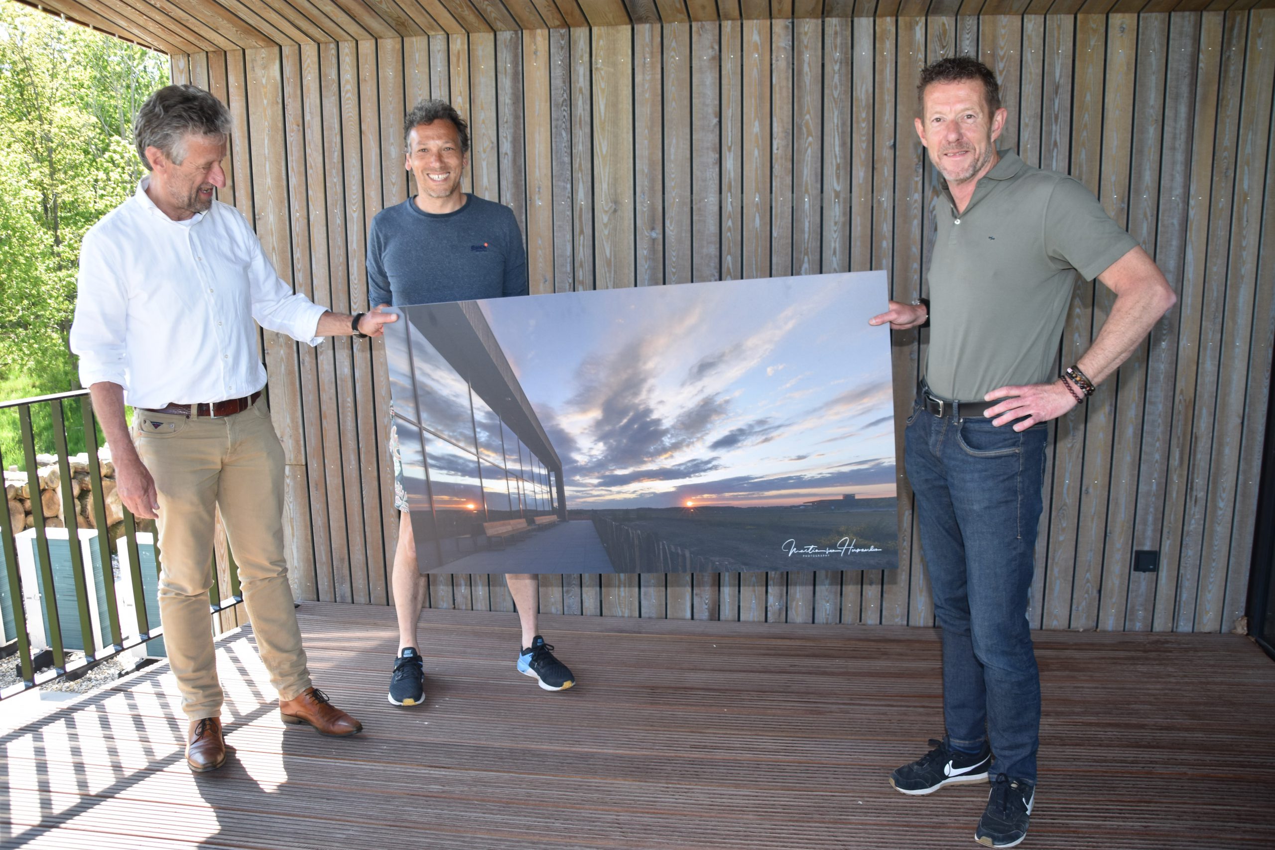 De foto van het Soesterdal in de avondzon is al op 1 mei vorig jaar gemaakt door natuurfotograaf (en dorpsgenoot) Martin van Herwaarden. Het was even wachten op een goed moment om deze aan het Soesterdal te schenken, maar nu het restaurant echt goed haar deuren kan gaan openen, is de afspraak gemaakt.