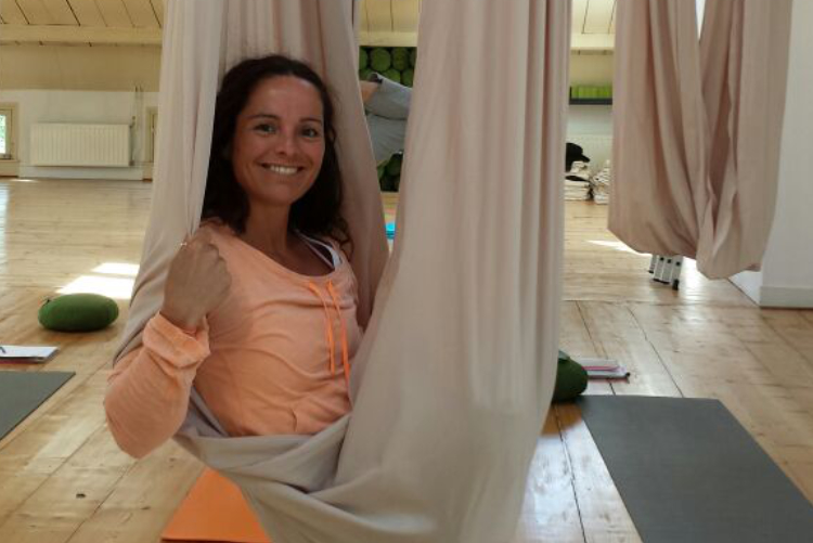 Je hangt met Arial Yoga in een groot draagdoek boven de grond, in tegenstelling tot andere vormen waarbij je op heuphoogte hangt. Hierbij voer je herstellende yogahoudingen uit in een zogenaamd draagdoek, waarbij je in de lucht hangt, ondersteund door een hangmat. Dit geeft een gevoel van lichtheid en ruimte en helpt het lichaam om spanning los te laten.