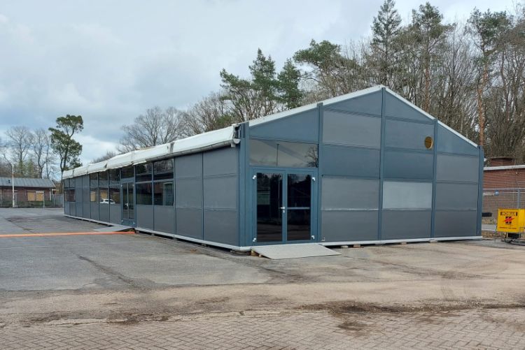 Slechts enkele meters van het vliegdorp, aan de overkant van de snelweg A-28, zien we tussen de bomen en struiken twee enorme (witte) tenten en een grijs paviljoen verschijnen. Achter het hekwerk en de voormalige Amerikaanse supermarkt op Kamp van Zeist zijn werklieden dag- en nacht in de weer om de tijdelijke opvang van tweehonderd vluchtelingen mogelijk te maken. Nog slechts twee weken en dan zal het volgens veel bewoners merkbaar drukker gaan worden in het vliegdorp.