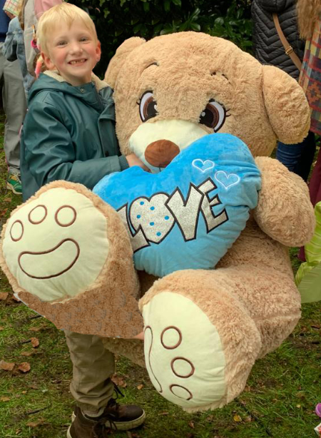 De gouden eieren waren extra bijzonder. In elk gouden ei zat een unieke code verstopt. Die konden kinderen inwisselen voor mooie prijzen. Dankzij gulle sponsoren stonden er tafels vol cadeautjes klaar. De hoofdprijs was een enorme knuffelbeer, geschonken door de kermis van Soesterberg. Mick uit Soesterberg was de gelukkige winnaar. “Hij krijgt een mooi plekje,” vertelde hij in soortgelijk strekking.