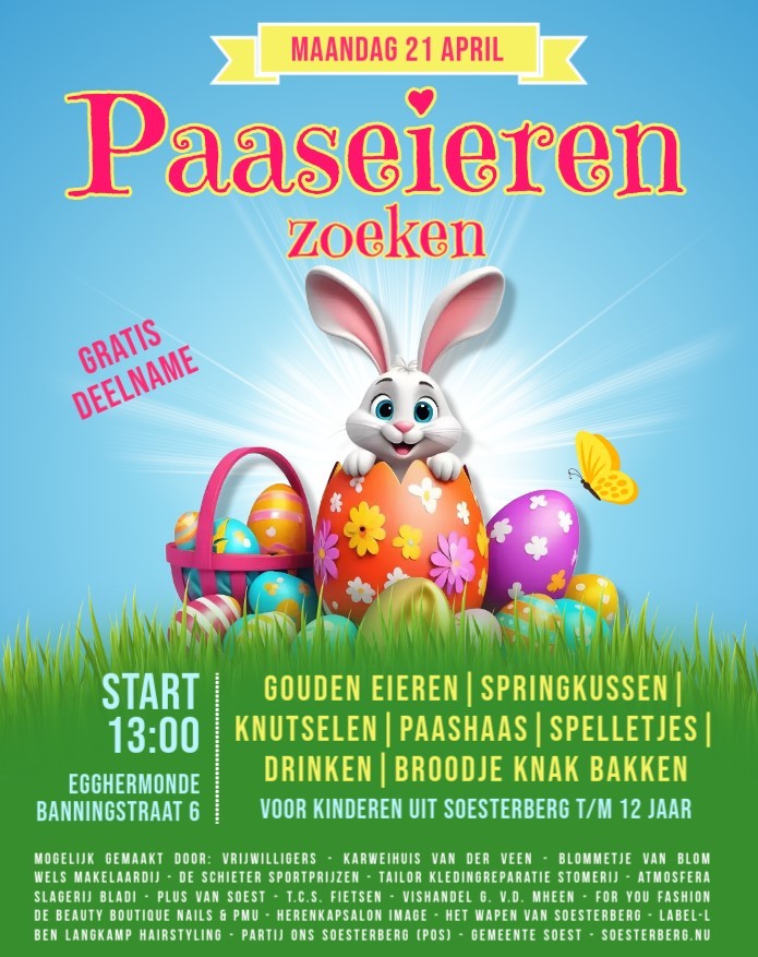 Wie een gouden ei vindt, wint een speciale prijs. De organisatie verwacht opnieuw ruim 250 kinderen uit Soesterberg en omgeving.