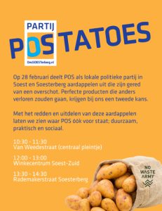 Met deze combinatie van praktische actie en persoonlijk contact wil de Soesterbergse partij laten zien waar zij voor staat: sociaal, duurzaam en direct betrokken bij wat er leeft. De aardappelactie is daarmee niet alleen een statement tegen verspilling, maar ook een uitnodiging aan inwoners om mee te denken over de toekomst van hun dorp.