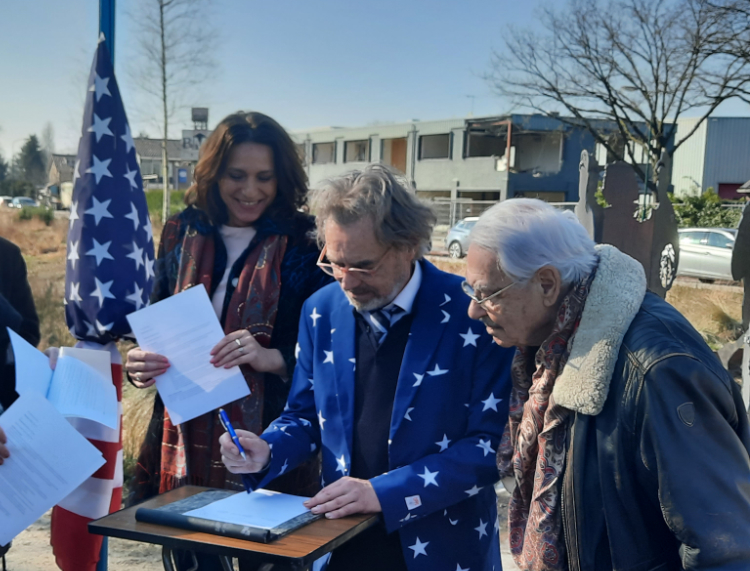 De wethouders Kundic van Soest en Fluitman van Zeist kwamen persoonlijk de oplevering bijwonen deze middag en samen met sponsoren werd het hoogste punt gevierd met Amerikaans pannenbier (alcoholvrij voor de liefhebbers) na het hijsen van de vlag door Carel Bense en Cor Sukking van het Comité SAM. Ook werd het onderhoudscontract of de overdacht ondertekend door beide partijen.