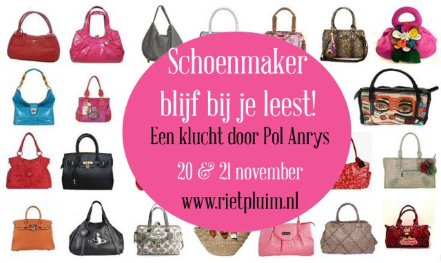Op vrijdag 20 en zaterdag 21 november zet Toneelvereniging De Rietpluim weer een nieuw stuk op de planken. De hilarische klucht ‘Schoenmaker blijf bij je leest!’ van de Belgische schrijver Pol Anrys beleeft bij de verenging zijn Nederlandse première.