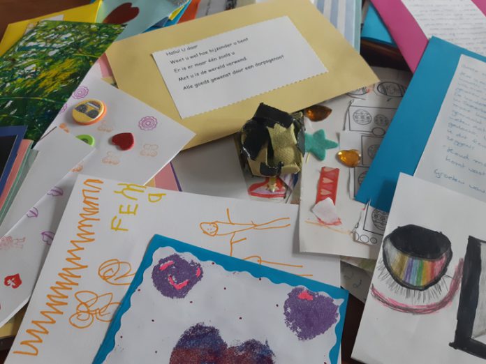 Maar om de senioren deze dagen een hart onder de riem te steken heeft de nieuwsredactie van Soesterberg.NU samen met de kinderen van de Basisschool De Postiljon en enkele bewoners uit het vliegdorp een postkaart actie uitgerold. Het uitrollen ging overigens met uiterste zorg en rust, want alle creatieve kaarten werden na het beschrijven 24-uur in quarantaine gehouden.