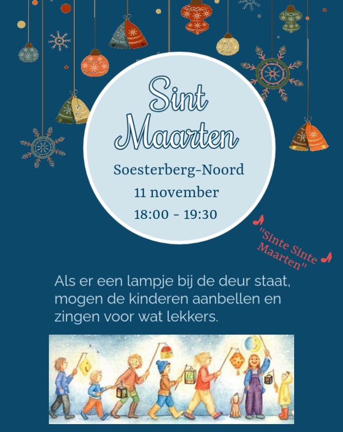 Op maandag 11 november trekken kinderen met hun kleurrijke lampionnen door de straten van Soesterberg Noord. Tussen 18.00 en 19.30 uur gaan ze langs de deuren, zingend en hopend op lekkernijen.
