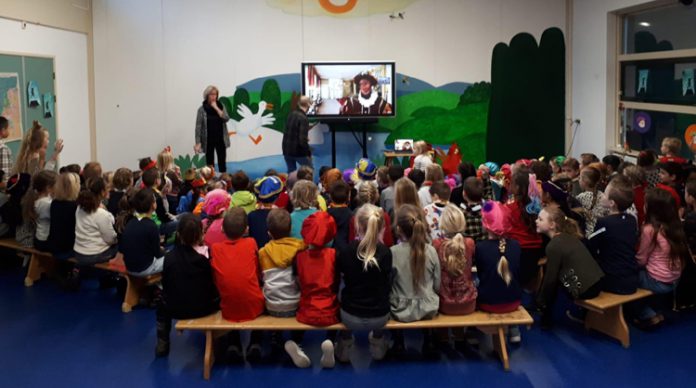 Deze ochtend kon hij zijn drukke agenda gelukkig nog vrijmaken en sprak hij alle kinderen digitaal toe via het digitale schoolbord van de Carolusschool in Soesterberg. Voor Sint en SpringPiet, maar ook voor de school en alle kinderen een ongemakkelijke verwelkoming. Ieder jaar komt de goedheiligman persoonlijk langs op de Carolusschool in Soesterberg, maar vanwege de Corona virus en gezien de leeftijd van Sinterklaas was er dit jaar, evenals op de openbare school De Startbaan, bewust gekozen voor een digitaal ontvangst om mogelijke besmettingen te voorkomen.