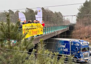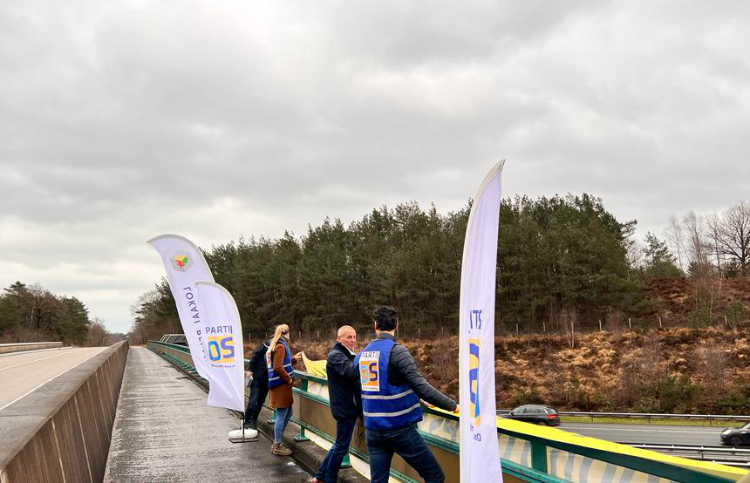 Deze maandagochtend organiseerden beide politieke partijen een gezamenlijke actie op het viaduct van het Zeisterspoor / Kolonel H.L. van Roijenweg over de A28 om hun standpunten kracht bij te zetten en hun bezwaren tegen de windmolens kenbaar te maken. Het viaduct ligt precies tussen de kernen van Soesterberg en Leusden in.