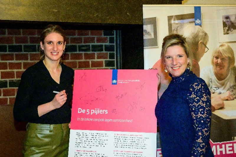 Wethouder Liesa van Aalst heeft afgelopen woensdagmiddag haar handtekening gezet onder het landelijk actieprogramma “Eén tegen eenzaamheid” van het ministerie van VWS. Doel van dit actieprogramma is de trend van eenzaamheid onder ouderen te doorbreken.