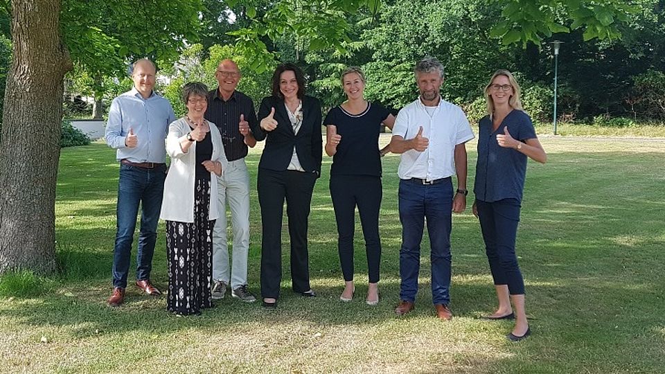 De leden van Taskforce Energietransitie presenteren zich op de foto: Van links naar rechts: Remco Dorrestijn namens mobiliteit, Judith de Pagter voorzitter van de Soester Zakenkring, namens werken, Menno Westveld Energie Actief Soest (EAS) namens wonen, wethouder Nermina Kundić, Annelinda van Dijck namens de Alliantie (wonen), Evert ten Kate namens het BPD (werken) en Diana Paarlberg namens Portaal/ (wonen)