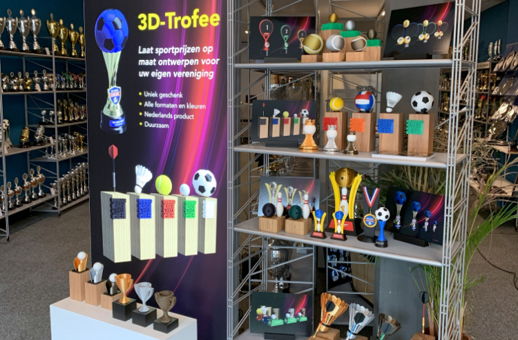 In de prijzenwinkel aan de Buys Ballotlaan schitteren honderden bekers en trofeeën. Maar ondernemer Ed Soesbergen van De Schieter gaat sinds enkele dagen een stap verder. Hij biedt nu volledig gepersonaliseerde 3D-geprinte trofeeën aan.