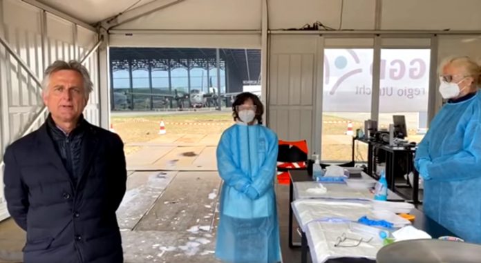 “Woensdag 29 april. Ik sta hier op vliegbasis Soesterberg, bij het Nationaal Militair Museum. En ik sta in de tweede teststraat van de GGD waar mensen getest kunnen worden op het Coronavirus. Belangrijk werk, wat de GGD hier doet. Omdat hiermee mensen die in de zorg of in het onderwijs strakjes gaan werken getest kunnen worden of ze wel of juist geen Corona hebben en dat bepaalt of ze kunnen werken of juist beter thuis kunnen blijven. Gelukkig kunnen steeds meer mensen steeds meer naar buiten en dat is ook fijn, maar een belangrijke oproep toch ook; “blijf afstand houden, want het liefst zien we zo weinig mogelijk mensen in deze test-straat”.