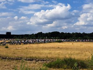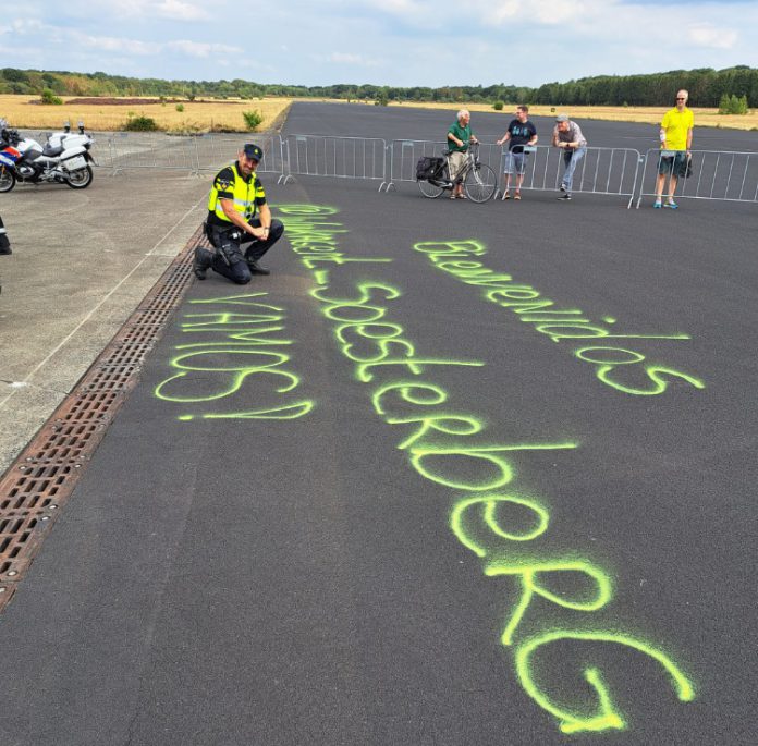 De veldleeuweriken zullen angstig hebben opgekeken toen honderden of wellicht zelfs duizenden mensen zich verzamelden rond de landingsbaan in Soesterberg om een glimp op te kunnen vangen van de rondrazende wielrenners van de Ronde van Spanje die vandaag onder andere Soesterberg aandeed.