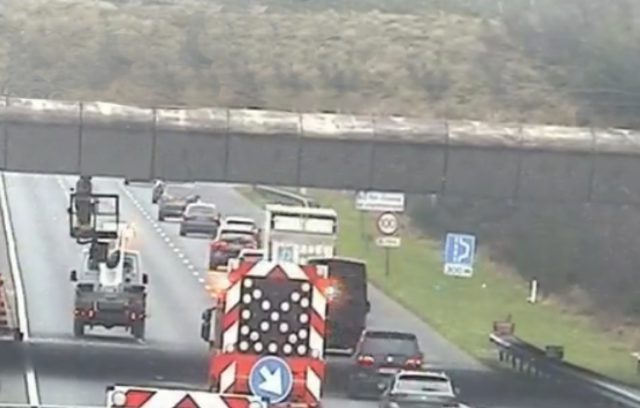 Op de snelweg A28 bij Soesterberg is de aannemer momenteel bezig met het verwijderen van ijspegels van de viaducten. Vanuit Utrecht levert dit nu een vertraging op van 30 minuten.