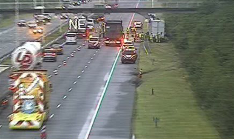 Naar verwachting zal eind deze ochtend de snelweg weer vrijgegeven worden. Door de zomervakantie is de ochtendspits iets minder heftig, maar het zal nog even duren voordat de ravage is opgeruimd en auto’s weer vrij kunnen doorrijden.