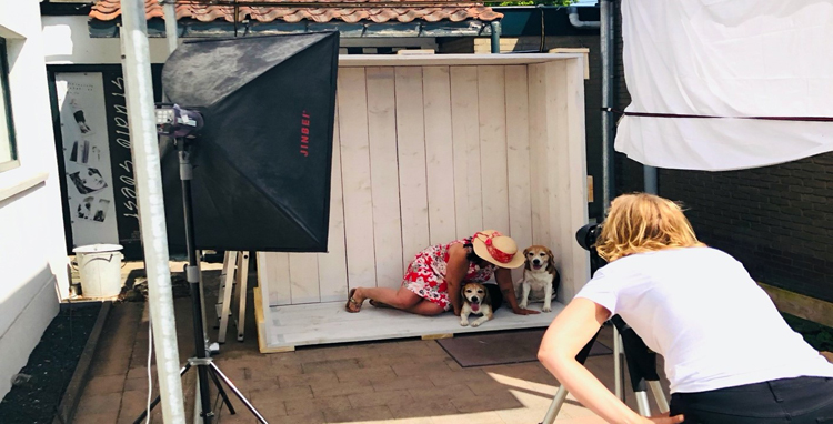 Na een tijdje te hebben nagedacht kwam Willems weer terug bij af. Toch maar thuis. “Maar hoe ga ik dat aanpakken”, vroeg ze zich af. “Mijn man zei al, dat hij niet nóg een project van mij erbij kon hebben en dat als ik een box wilde maken het maar aan iemand anders moest vragen.” zegt Willems lachend. De grote oprit voor de deur leek Willems een goede plek om fotoshoots te houden, “het huis op de achtergrond is alleen niet zo spannend, daar moest ik iets op verzinnen.”