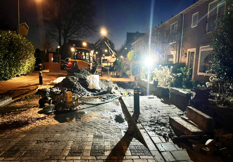 De afgelopen maanden waren er in de straten van Soesterberg veel renovatiewerkzaamheden, maar op de Huygenslaan was het afgelopen nacht letterlijk en figuurlijk dweilen met de kraan open voor het waterbedrijf.