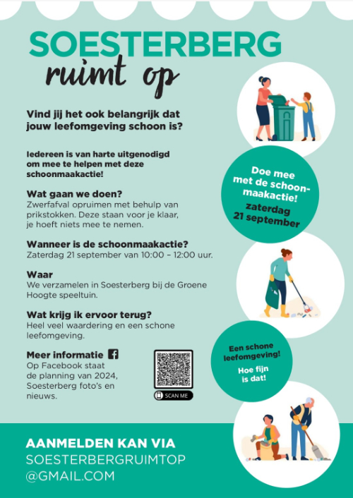 Zaterdag 21 september belooft een dag te worden waarin Soesterberg zich weer van zijn beste kant laat zien: samen in actie voor een schoner dorp!