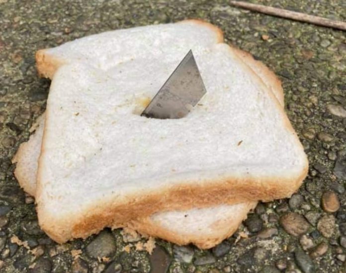 De dader van deze boterham met scheermesjes is nog niet opgepakt, maar er zijn de nodige aanwijzingen die momenteel onderzocht worden.