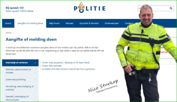 “Het is eigenlijk heel simpel: Als wij geen officiële aangifte of melding hebben, dan kunnen we niet overgaan tot aanhouding of opsporing”, aldus wijkagent Nico Sturkop die zonder aangifte of melding iedere boef eigenlijk in theorie binnen enkele uren moet laten gaan, hoe zorgelijk het op dat moment ook is. “Loopt er een verdacht iemand rond of ben je van mening dat iemand hinderlijk parkeert, dan kan je een melding doen op het telefoonnummer 0900- 8844. Gaat het om een (levens-)bedreigende situaties, dan kun je het beste 112 bellen”, aldus de wijkagent van Soesterberg.